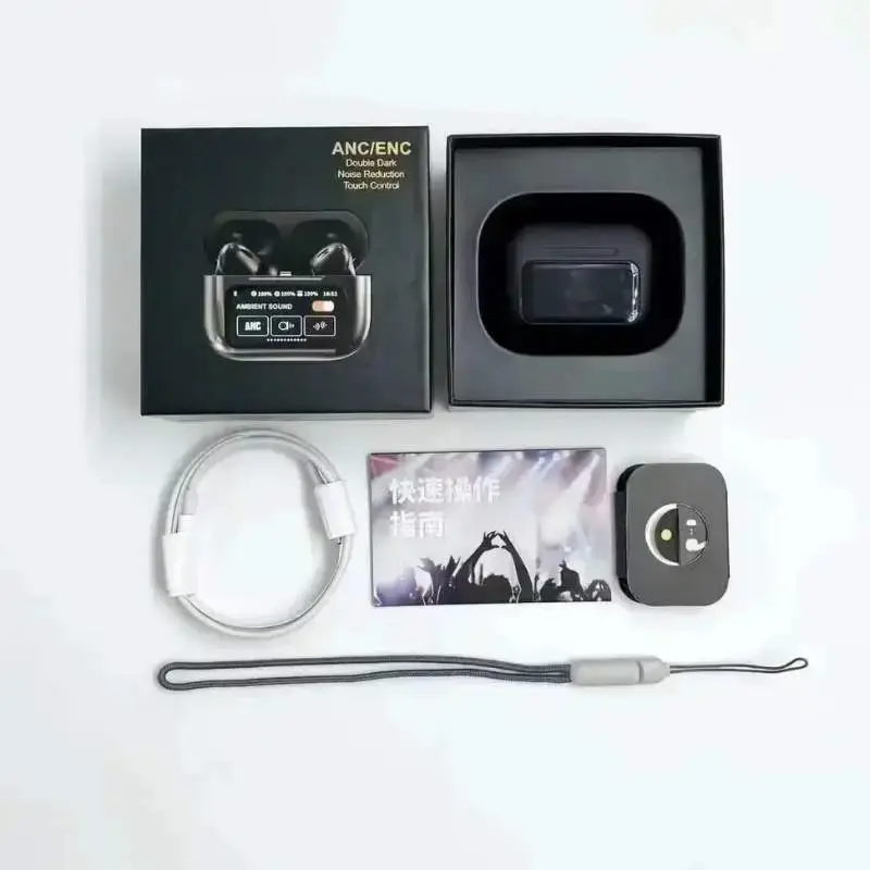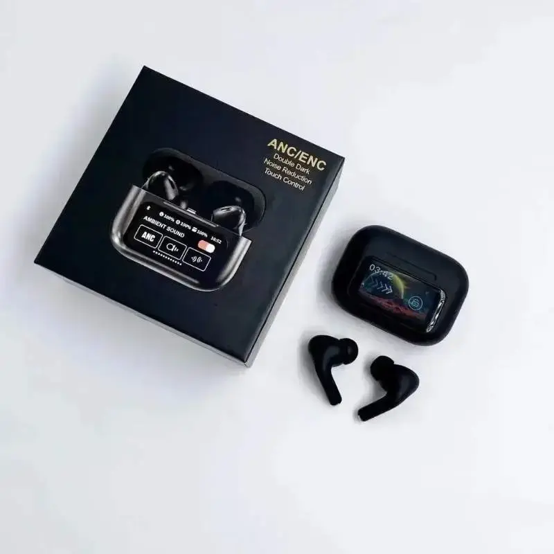 Experience premium sound and convenience with the Black A9 Pro ANC AirPods. Featuring advanced noise cancellation, Bluetooth 5.4, and a smart screen for real-time status, these earbuds deliver rich audio, long battery life, and comfortable in-ear light sensing detection. Ideal for music, calls, and daily use, they combine fast charging with seamless performance for on-the-go lifestyles.